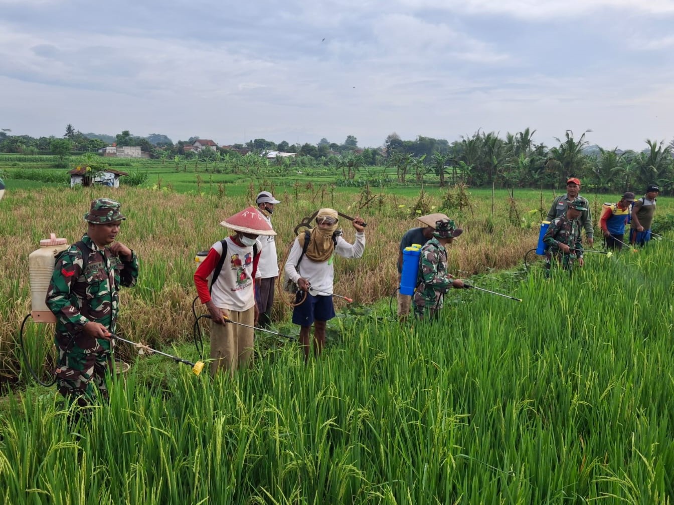 Menjawab tantangan tersebut, personel Koramil 06/Kembaran Kodim 0701/Banyumas Korem 071/Wijayakusuma bersama Dinas Pertanian Kabupaten Banyumas melakukan pendampingan penyemprotan hama wereng pada Kamis (22/1/2026). Kegiatan ini berlangsung di lahan milik Gayat Muntohar, Ketua Gapoktan Armada 1 Kembaran, dan diikuti sekitar 25 petani.
